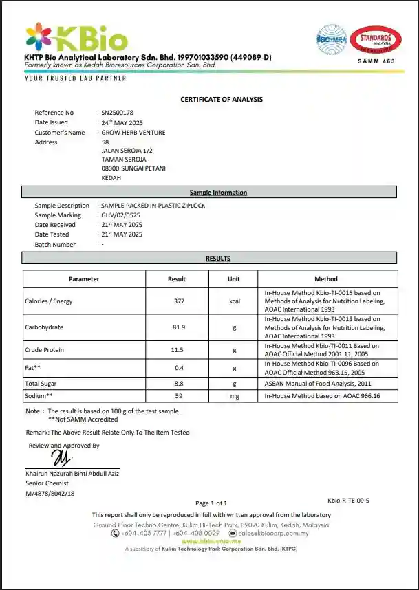 ✔️ Disahkan kandungan protein, karbohidrat & kalori