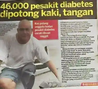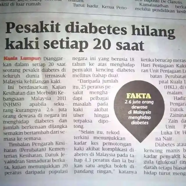 Di Malaysia, pesakit diabetes kehilangan kaki setiap 20 saat. Jangan tunggu sampai doktor kata: "Kalau tak kering... kita potong."