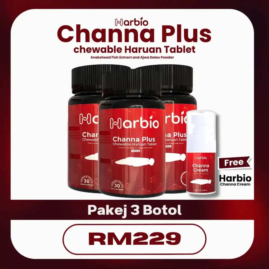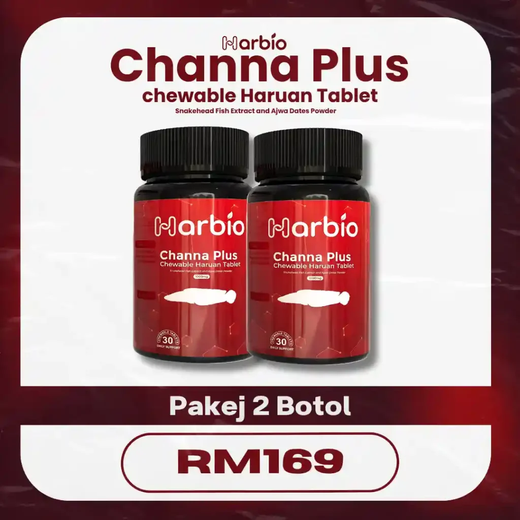 Formulasi Harbio guna bahan semulajadi seperti ekstrak ikan haruan & kurma ajwa, tanpa hormon sintetik atau bahan terlarang.