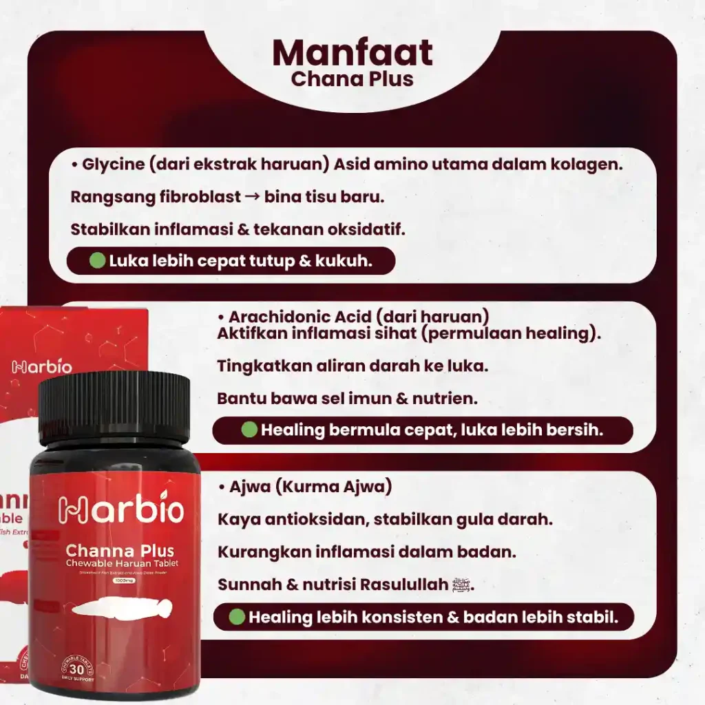 Sejak 1994, kajian tempatan sahkan haruan kaya glycine & amino penting yang bantu luka dalaman sembuh dari akar.