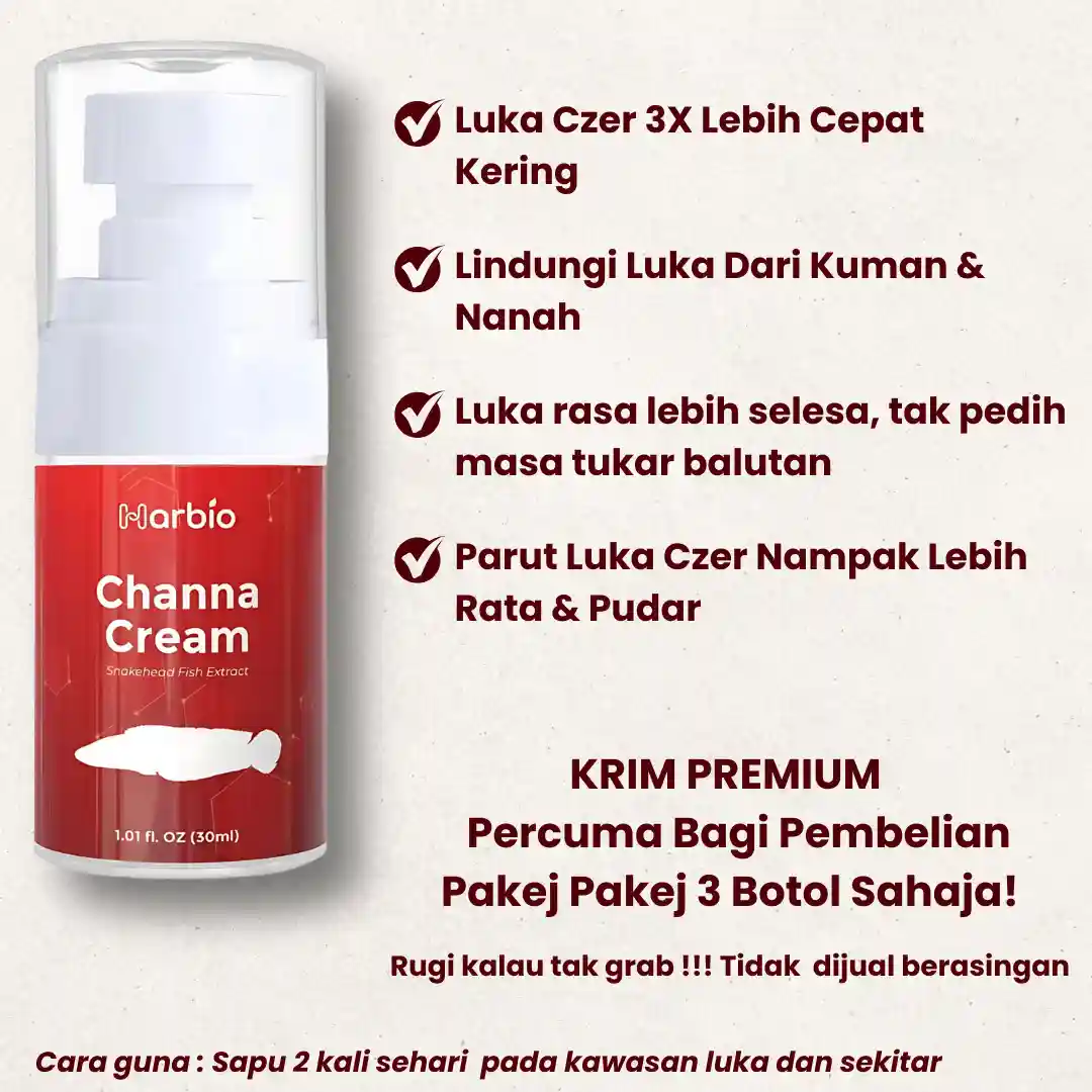 Harbio Channa Cream untuk pastikan luka lebih cepat kering kurang bernanah ,dan berair